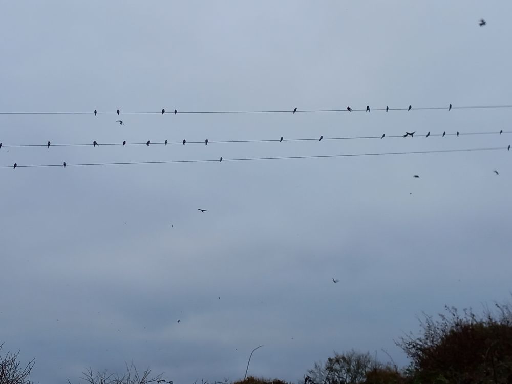 Monday 22nd September 2025 Sweeping across the blue sky a constant stream of Swallows, the sun gleaming on the dark blue plumage, House Martins a... by Katie Black