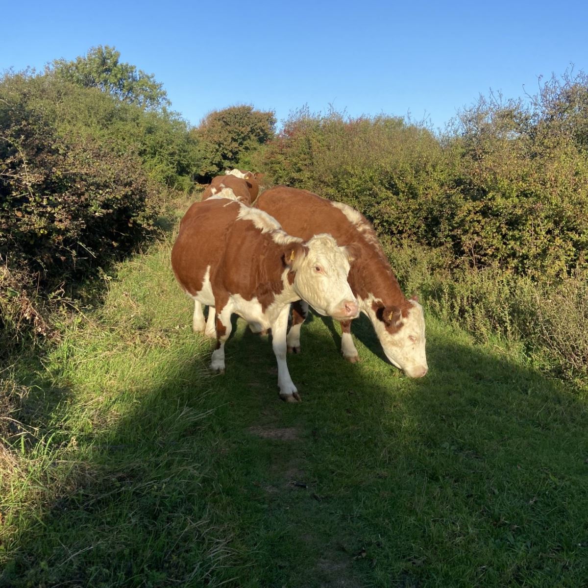 Sunday 05 October, 2025 Pushing a couple of calves out of the way of the gate as I make my way into field 34. Passing peaceful grazing cows ad... by Hannah Hastings