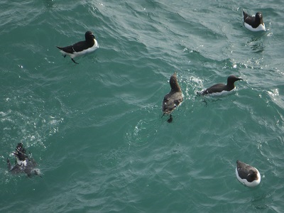 Below the cliffs about 50 Auks were bobbing, eventually I was able to spot 5 Razorbills amongst all the others, which were Guillemots, on this occasion it was their actions of tapping bills rather than shape or colour that distinguished them apart.