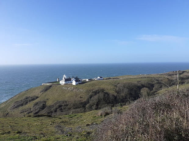 A quite glorious early morning to be walking out at Durlston, a fresh south-west wind whizzing up the channel churning the sea, producing white crests on the waves.
