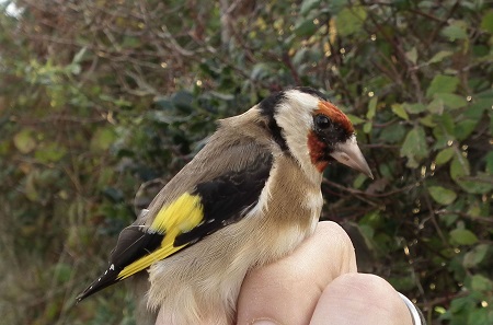 A flock of chittering Goldfinch greet me this morning fluttering about a Hawthorn bush outside the learning centre. A beautiful sunny still morning, a half-moon still visible in the sky.